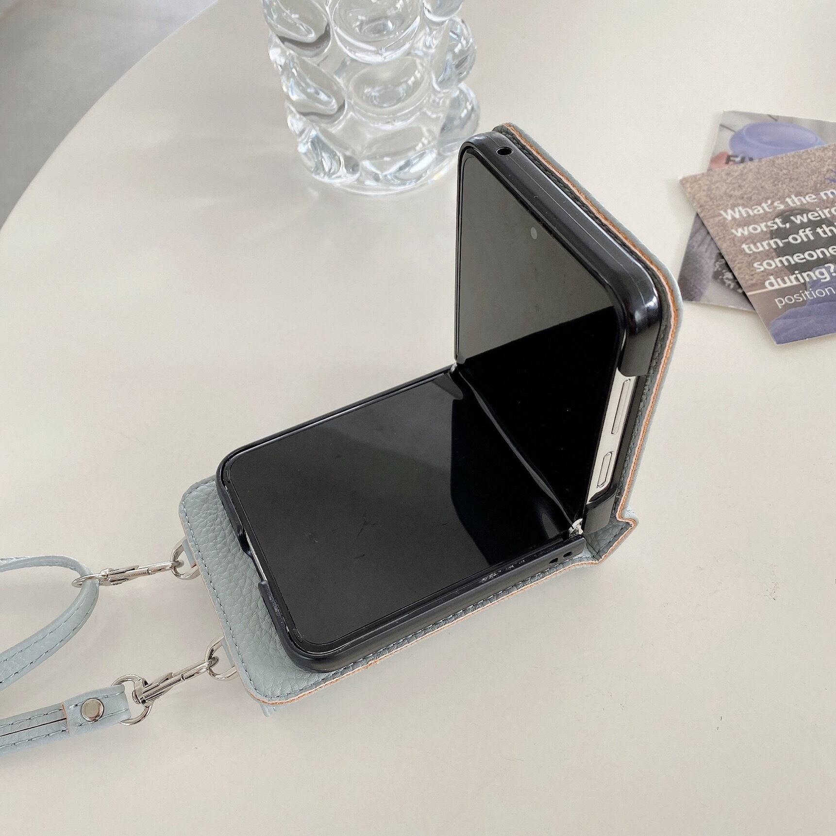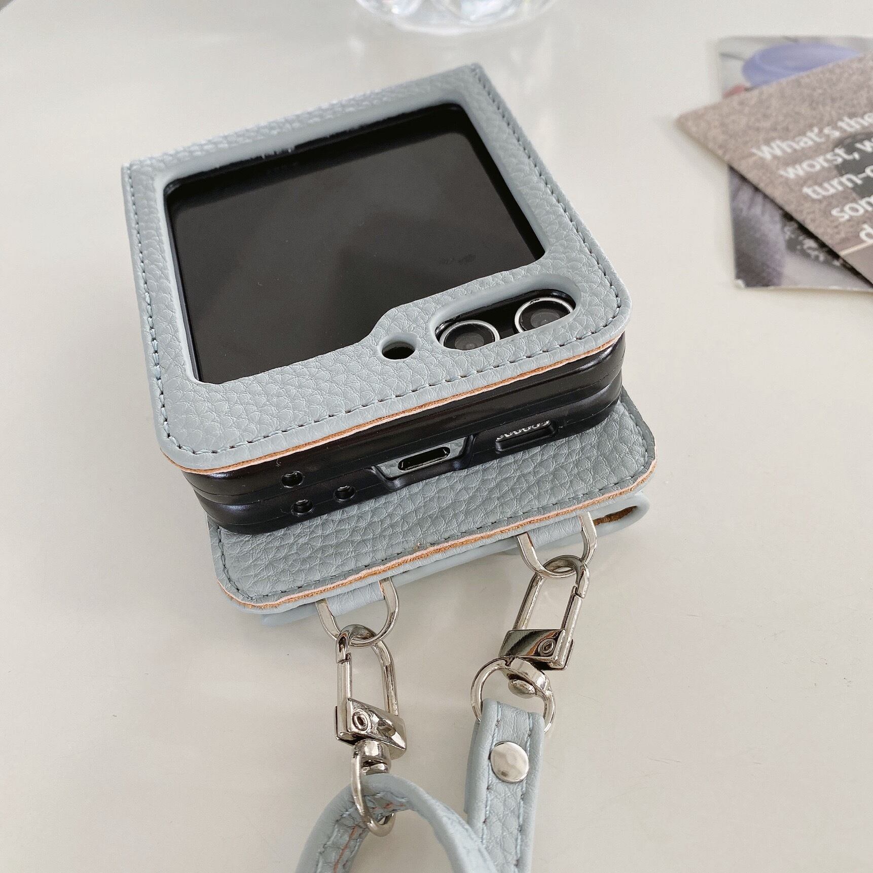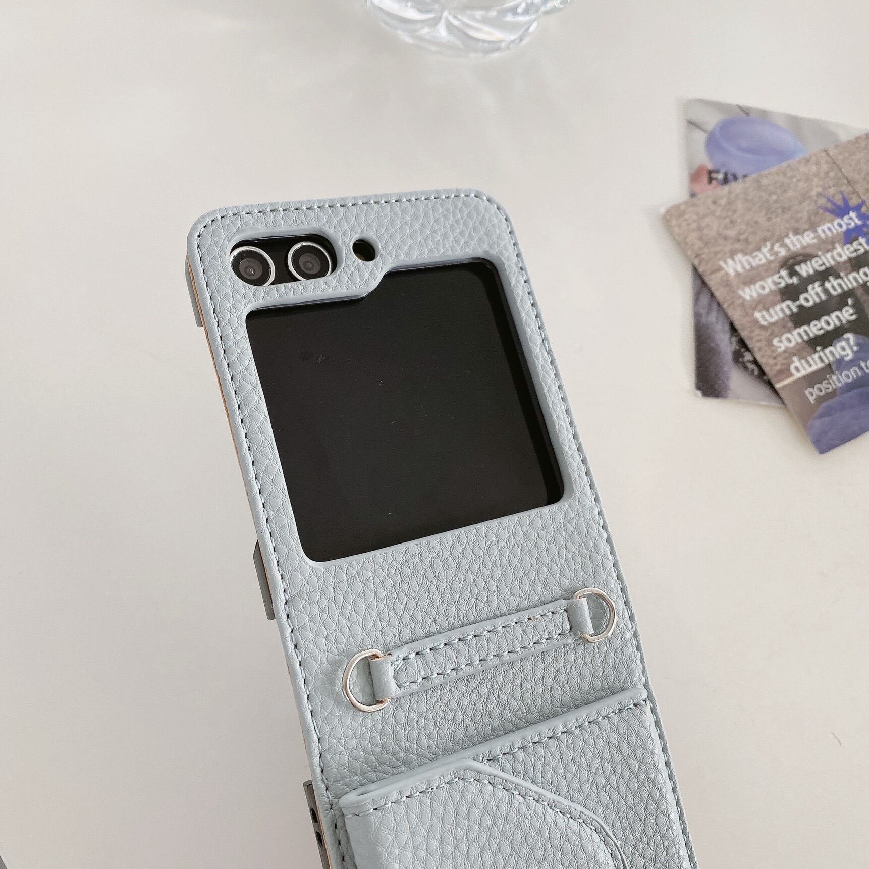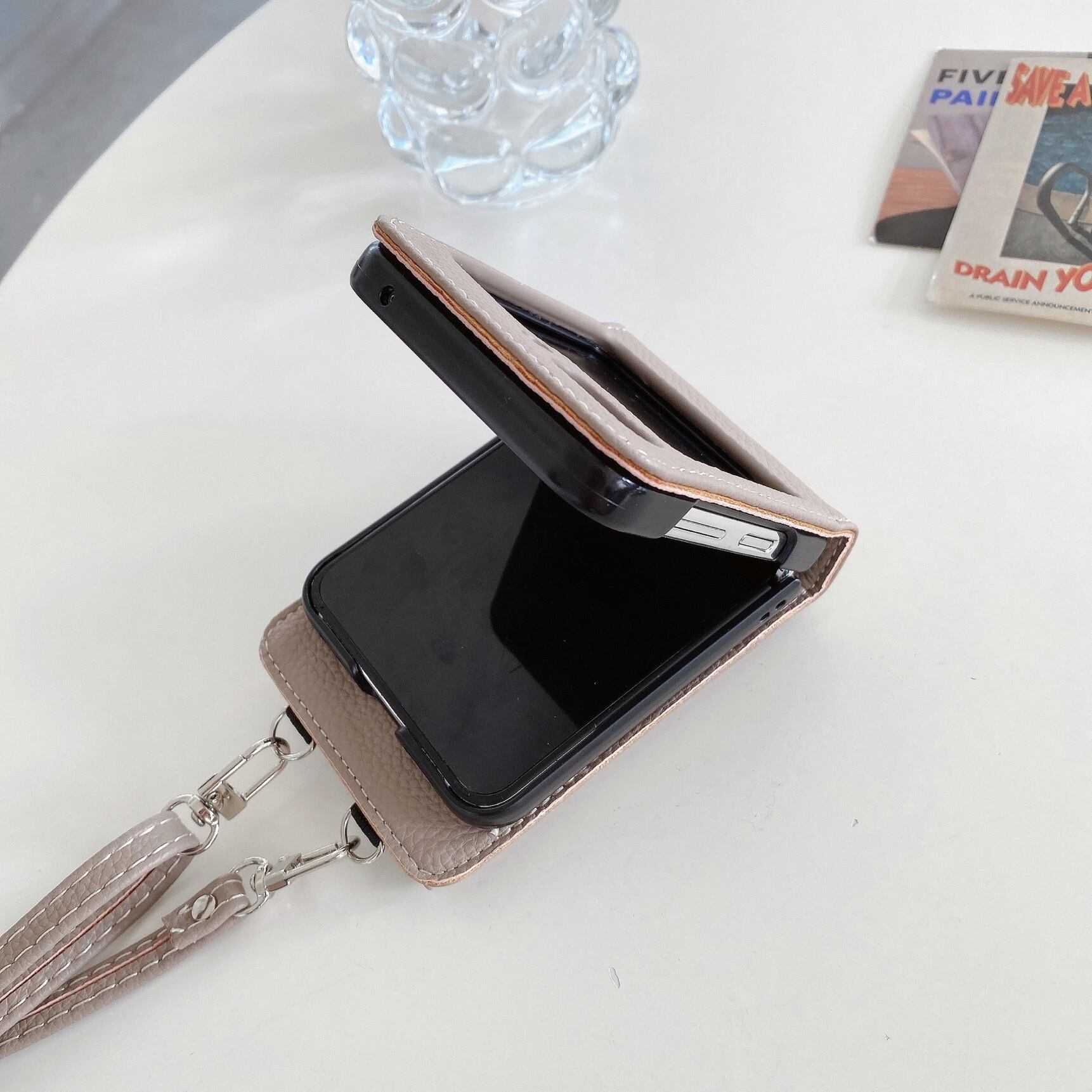 こちらは、高級感のあるレザー素材を使用したスマホケースです。背面にはカード収納ポケットが付いており、スマホと一緒に持ち歩くカードや小銭などを収納することができます。ショルダータイプで、肩から下げてハンズフリーで持ち運ぶことができるため、とても機能的です。全5色の展開となっており、幅広いスタイルに合わせてお使いいただけます。 素材:PUレザー 対応機種:【Galaxy Z Flip】3|4|5 【iPhone15対応】iPhone版をお買い求めの方はこちら↓ https://yumitama.thebase.in/items/81015662 【GalaxyS24対応】その他Galaxy機種をお買い求めの方はこちら↓ https://yumitama.thebase.in/items/84096912 ■購入者限定特典■ 以下のオプション商品が特別価格で購入頂けます。 ③タグパッチ付き⭐︎ショルダーストラップ(4種) ※本機種はキラキラレンズカバーとガラスフィルム対応しておりません <オプション商品詳細ページ> https://yumitama.thebase.in/categories/3590129 ◆セット装着可能!同色系レザー小物入れ https://yumitama.thebase.in/items/74006722 ◆Galaxy機種に関して 当店の商品は輸入品ですので、Galaxy機種はグローバル版しかご提供できません。日本版とグローバル版にサイズ違う場合もありますので、ご購入の前にご自身のスマホをご確認いただけますと幸いです。誤ったご注文は返金ご対応できかねますので予めご了承ください。 ◆発送に関して ・オーダーを頂いてから海外に買付いたします。 ・国内到着後、ひとつひとつ丁寧に検品作業を行います。 ・日本郵便のクリックポスト(追跡番号あり)で配達致します。 ・お届けまでの目安日数はaboutページをご確認下さい。 https://yumitama.thebase.in/about